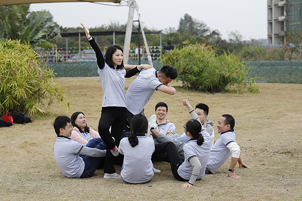12月25日早8:00公司所有同事乘坐旅游大巴經過一個半小時的行程后到達位于惠州博羅的歐野奇境營地,這是一片福田福地,背靠羅浮山脈,營地內數十畝草場,百畝園林,魚塘和水庫如明珠鑲嵌,無需修飾、渾然天成,來到營地稍作休息合影拍照后,此次戶外拓展對接教練告訴我們,這次的年會是一次比較有意義、有創新的團隊拓展活動,在此次拓展培訓中,所有參訓隊員被分為八個小組,各個小組的成員經過一番頭腦風暴,一個個有趣的團隊名稱,一個個響亮的團隊口號,一個個富有特點的團隊POSS被隊員們鮮明地、極富創意的表現出來。“紅火隊”、“超越隊”、“野狼隊”等團隊的精彩表現,整個活動中穿插的一個個拓展小游戲,在輕松愉快的氛圍中,放松心情,熔練團隊,讓大家在每個游戲里面感覺到每個人的責任和團隊凝聚力。