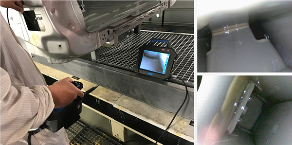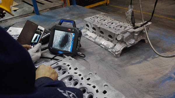 使用工業(yè)內(nèi)窺鏡作為一種可視的直觀檢查設(shè)備,效率很高。目前常用的檢查位置很多,包括發(fā)動(dòng)機(jī)的氣門位置附近的積碳、機(jī)加工的各種相交孔產(chǎn)生的毛刺、鑄造產(chǎn)生的鑄件存在的沙眼毛刺等缺陷、查看焊接位置的質(zhì)量及車身內(nèi)部填充的質(zhì)量等,并且,這些都成為了汽車制造中最重要的檢測位置。